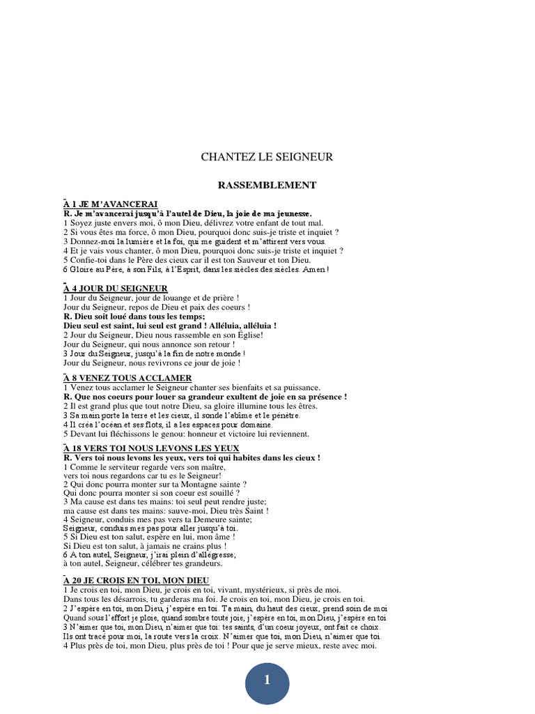 Chants Religieux Avec Liens Cliquables Fichier Pdf